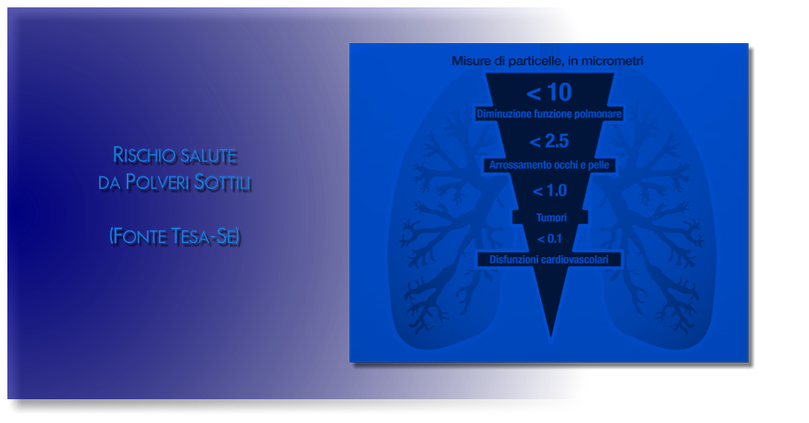 Da qualche anno si sta evidenziando la necessita' del controllo dell'aria indoor, date le conseguenze sulla salute; infatti, il particolato agisce sulla salute umana ed animale a seconda dell'origine (naturale, antropica ecc.) e delle dimensioni delle polveri; tra i disturbi attribuiti al particolato fine e ultrafine (PM10 e soprattutto PM2.5 PM1 e PM0.1) vi sono patologie acute e croniche a carico dell'apparato respiratorio (asma, bronchiti, enfisema, allergia, tumori) e cardio-circolatorio (aggravamento dei sintomi cardiaci nei soggetti predisposti).